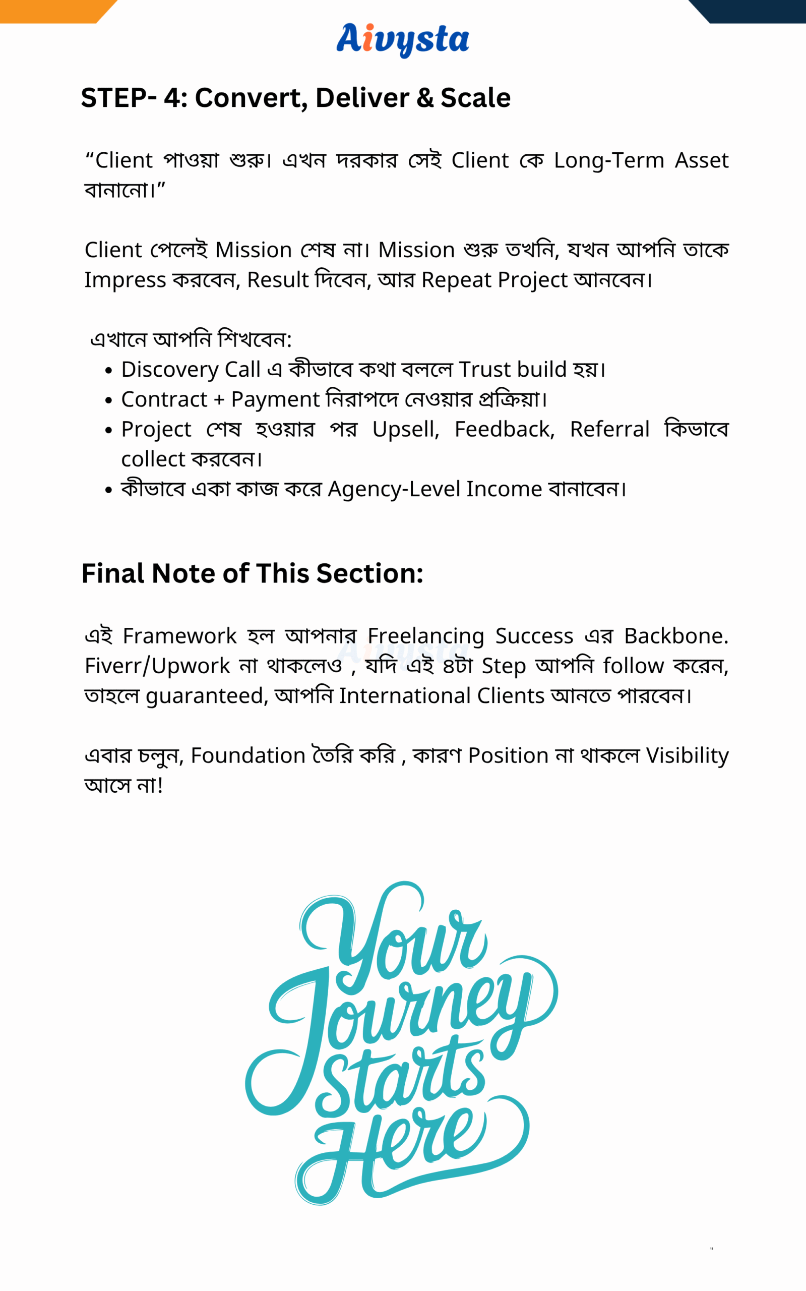 কিন্তু যদি প্রতিটি Action Step কাজে লাগান — তাহলে আপনার পুরো ফ্রিল্যান্সিং ক্যারিয়ার বদলে যেতে পারে।